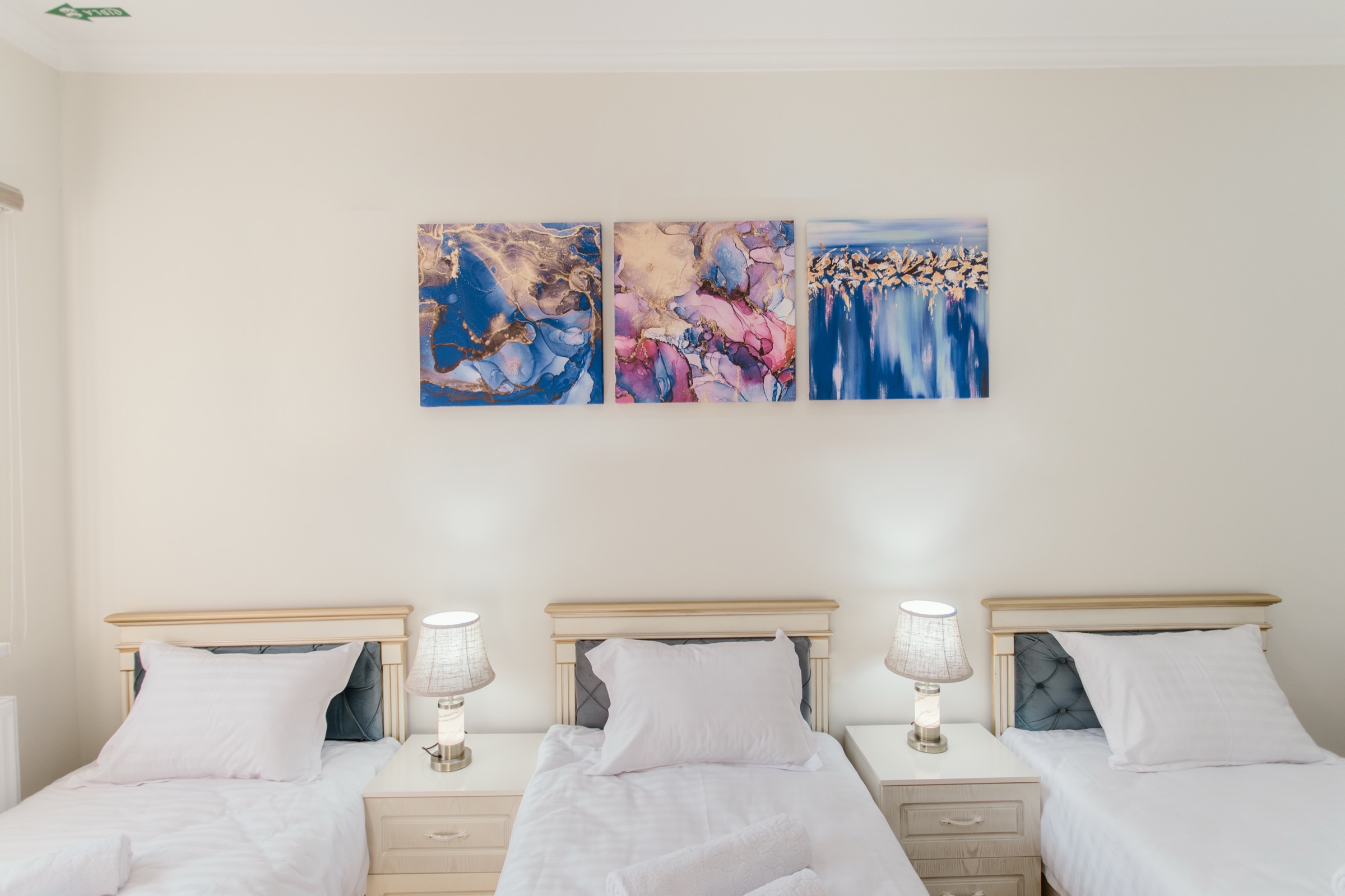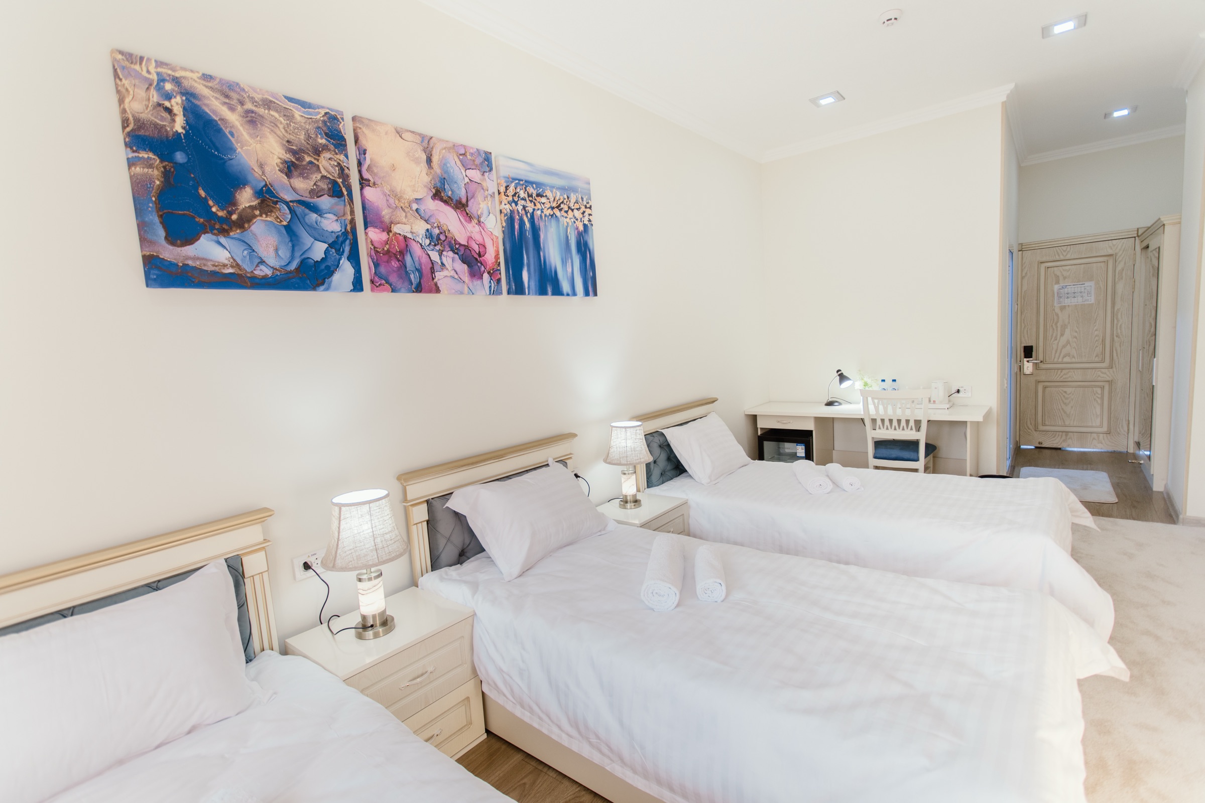Комфортный номер с тремя односпальными кроватями, ванной комнатой и всеми необходимыми удобствами. Идеально подходит для трёх друзей или небольшой семьи.